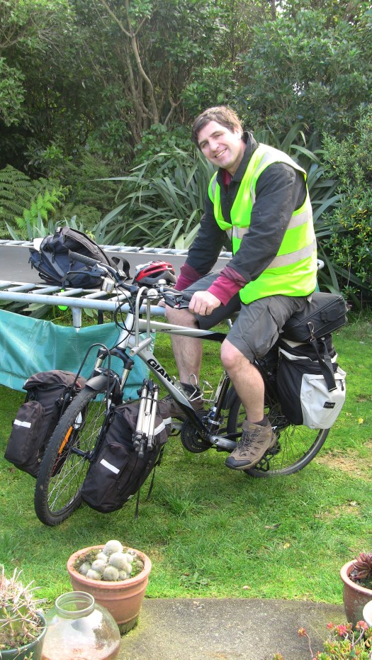 It’s a Giant bike that I bought in New Zealand. Just a standard Giant hybrid, a cross between a mountain bike and a racing bike.  Just heavy enough to carry a bit of gear and light enough to be able to push it around.  A typical cheap bike.