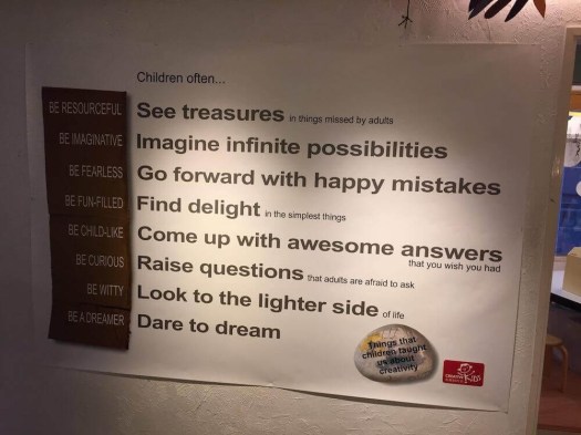 ‘The key is to immerse ourselves in cultural and creative events and activities and to be among creative minds. There really is such a thing as “group genius” when the sum is bigger than the parts. Adults need to leave their comfort zones and routines and venture into uncertain areas. Creativity is a mindset, a state of being, not something external to put on. So of course adults can be more creative! They just need to learn from the children!’