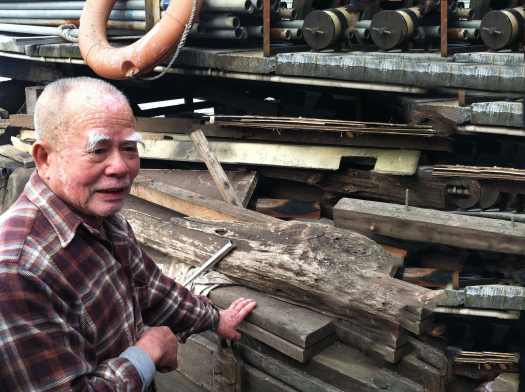 我們沿筲箕灣譚公廟道行了一小段路,到達荒廢的光明船廠時,區渭(亞神)睡得正酣。他的狗懷疑地注視著我們,以響亮的吠叫聲喚醒那位睡眼惺忪的船匠。嗜睡對於 87 歲半退休的亞神來說可是相當合理 ,尤其建造木船在香港已嚴重式微。六十多年來,亞神一直以造船維生。雖然風光不再,但其實近在 90 年代,大部分本地製造的木船均出自他的船廠。