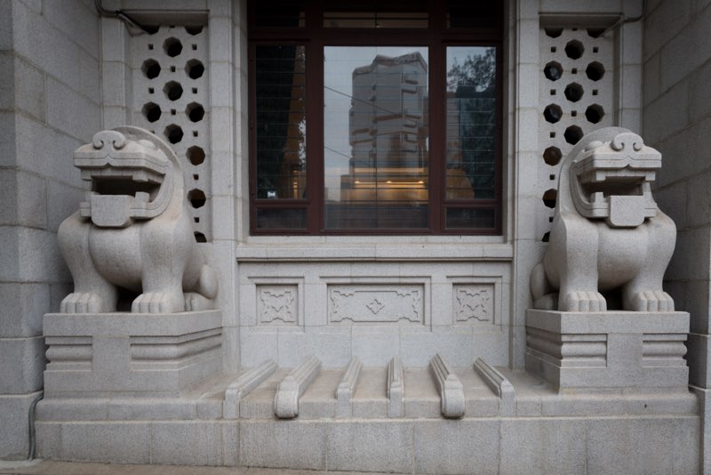 Founded by Sun Yat-sen in 1912 at the advent of the newly minted Republic of China, the Bank of China was to embody the spirit of a new, modern nation. In 1934, the bank commissioned Hong Kong’s oldest architecture firm, Palmer & Turner, to create high-rises in Shanghai, Singapore, and Hong Kong. Architect Luke Him-sau set about designing these three edifices in the height of 1930s Art Deco style. Nolli was brought in to create lions for the Hong Kong and Singapore branches, but not, it seems, the Shanghai branch.