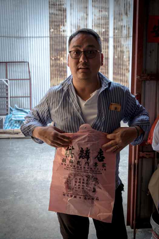 Mo comes from a respected line of makers. He’s in his late early 40s, but already has 27 years of experience in traditional paper crafts. His career began as a young qilin dancer, when he learned to mend the qilins. After 7 years apprenticing, he opened an incense shop in Tai Po. Soon, he’d branched out into paper goods.